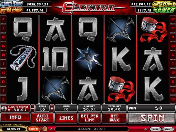 Elektra video slot game has 20 paylines and a great Marvel super hero theme with 2 bonus games and a super JACKPOT..[read more]